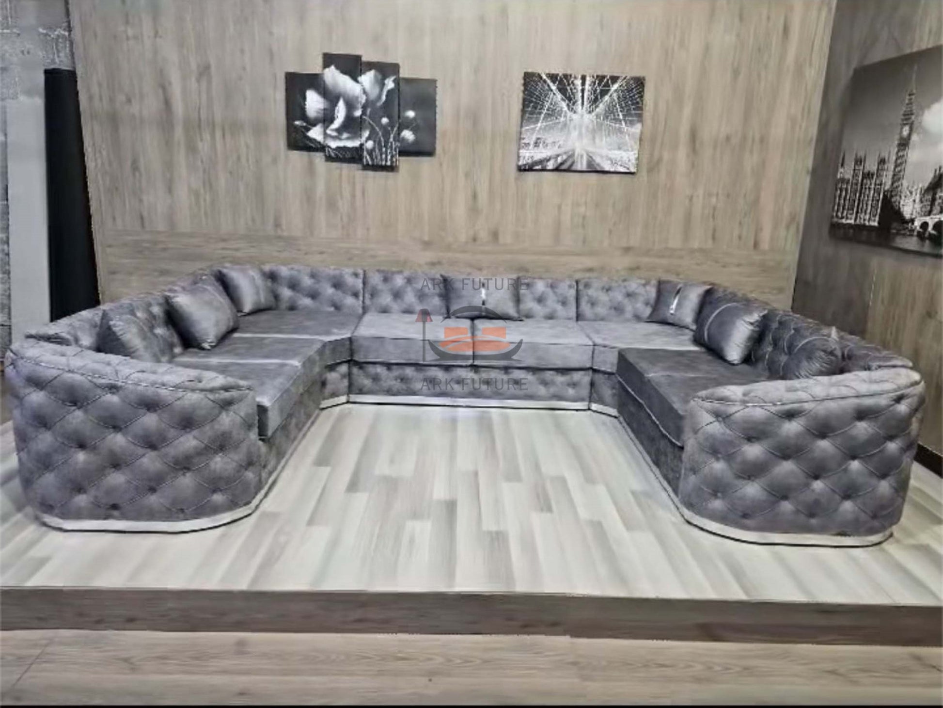 Alford U Shape Ambassador Sofa In Plush Velvet Fabric