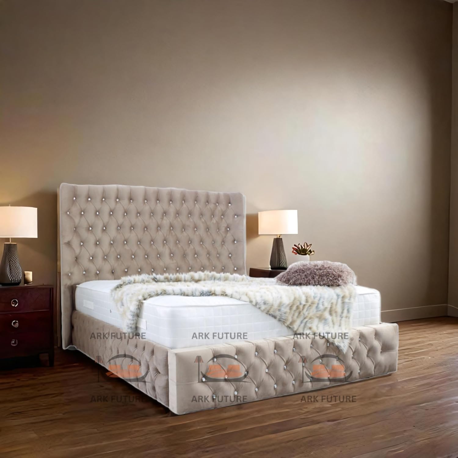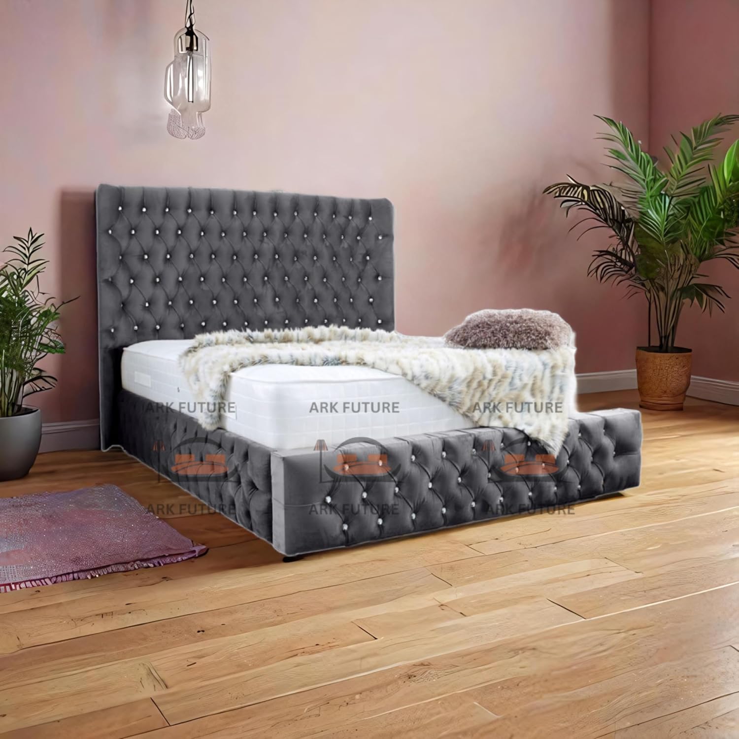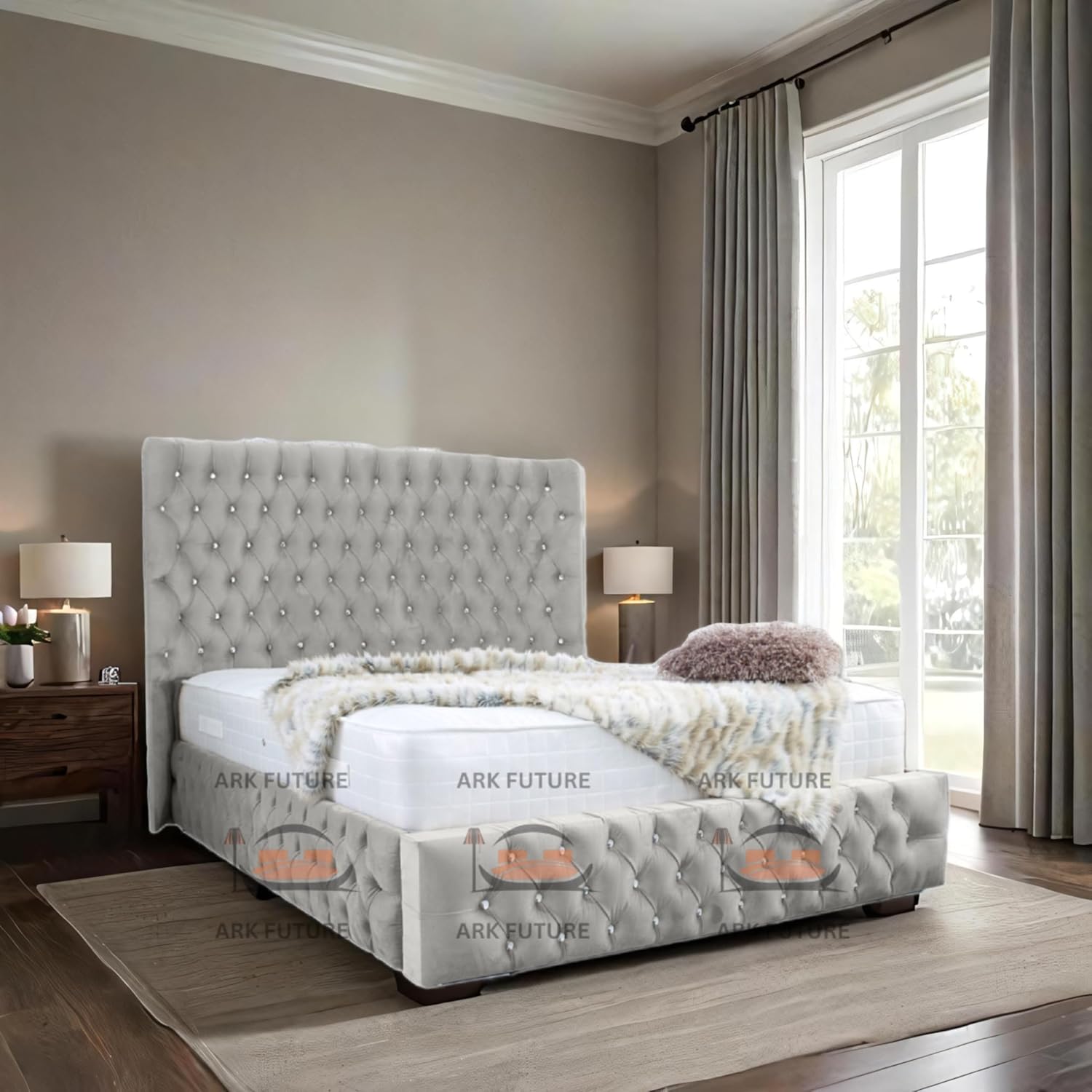Customizable details allow you to choose between matching or diamond button options, adding a personalized touch to your bed frame. Whether you prefer a sleek, uniform look with matching buttons or a more glamorous design with diamond-shaped accents, these details enhance the overall aesthetic of your bedroom. This customization option allows you to match your bed frame with your unique style, creating a luxurious and tailored look.