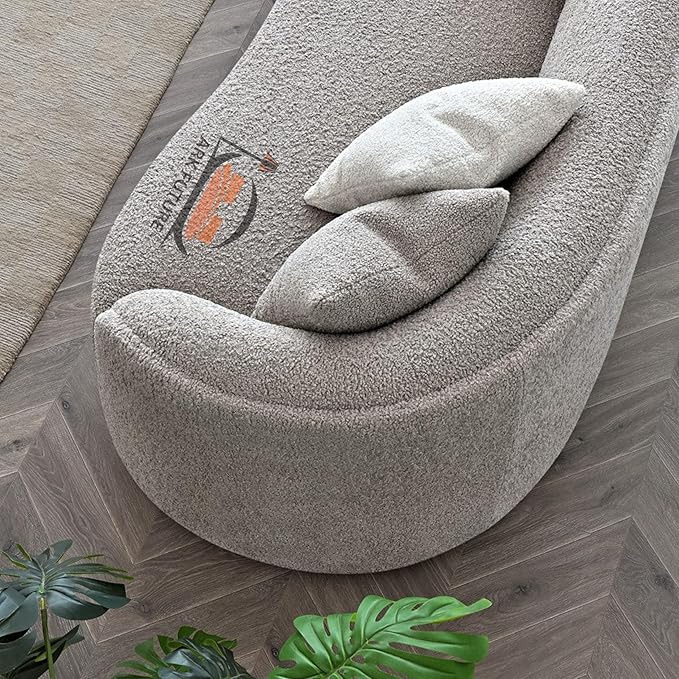 Nolita Boucle Teddy Sofa, Modern Curved Design, Plush Upholstery (Koala)