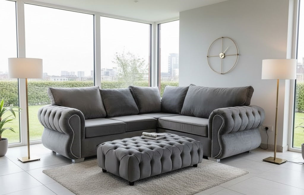 Rafter Chesterfield 5 Seater Corner Sofa with Coffee Table in Plush Velvet Fabric